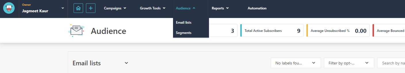 Create a Email List from email list option available under audience menu option(refer below image). It is really easy to create and add members with just few clicks. By default, there are Name, Mobile and Email fields for each member in Email list. Email is the mandatory field here. You can also add custom fields if required and perform computations. We will discuss that in another blog.