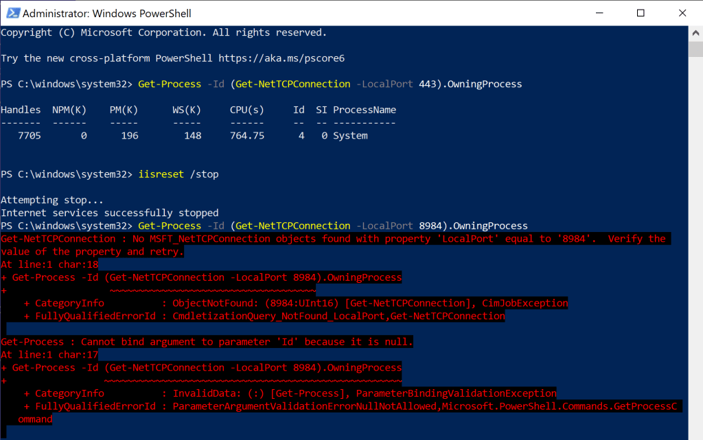 Get-Process -Id (Get-NetTCPConnection -LocalPort 443).OwningProcess