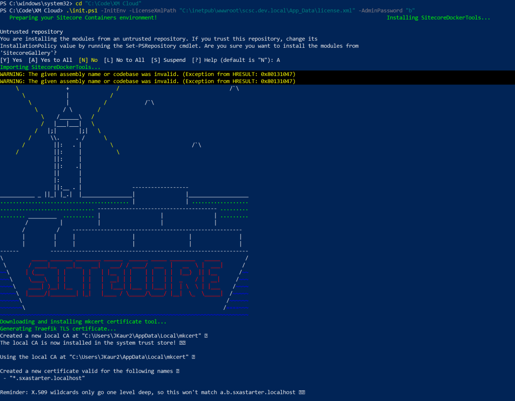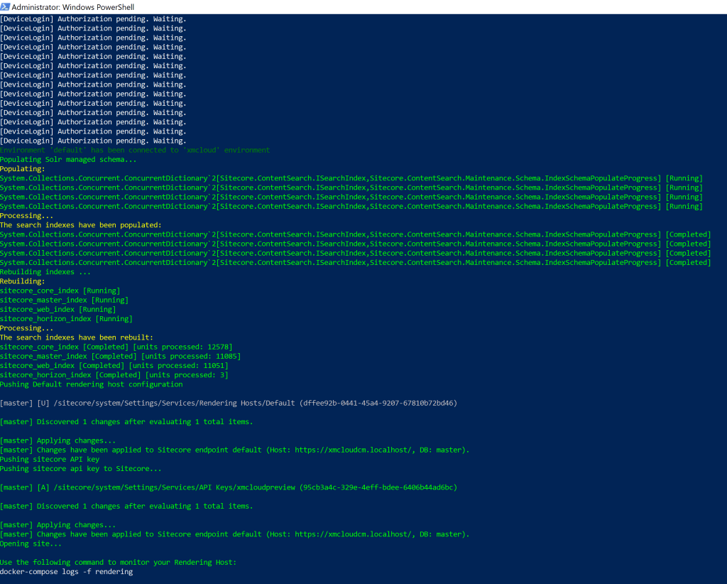 Now, run up.ps1 to download the Sitecore Docker images, install and configure the containers and client application