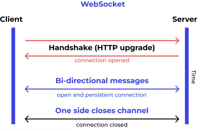 Web Socket APIs is TCP based computer communication protocol that enable bidirectional, full-duplex communication between servers and clients, using a pair communication model. WebSocket uses HTTP/1.1. Unlike traditional communication methods like REST, etc., this API does not need a new connection to be established for each message. Once the connection is initialized, messages can be seamlessly sent and received without interruption in the form of packets. It’s a stateful protocol i.e. the connection won’t break until either party decides to discontinue data exchange. It does not have any in built security features.
