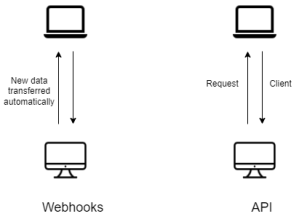 In Webhooks, data request is not required. Data is sent from server to client at some interval or change.