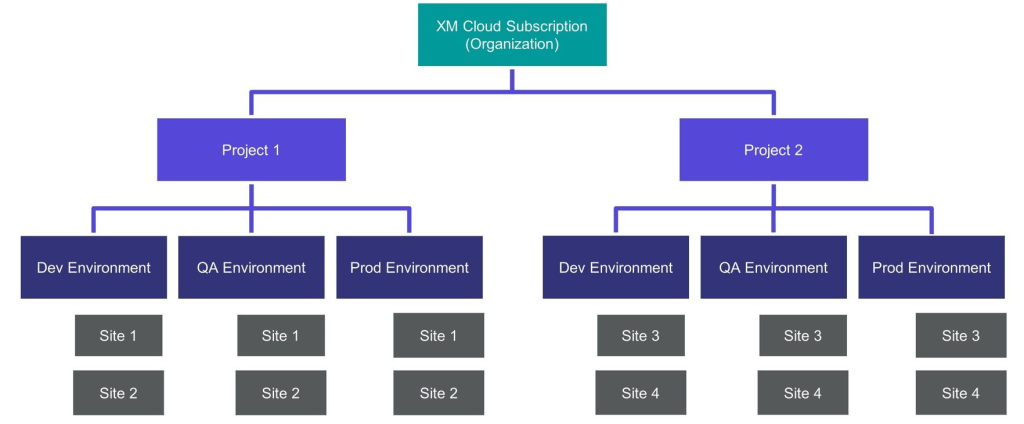 Depending on the licensing model of your subscription you’ll be able to create and manage 1 to many XM Cloud projects each one containing 1 to many XM Cloud environments.