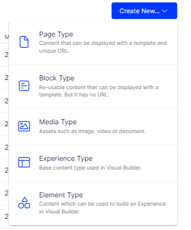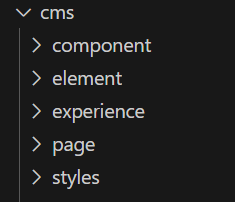 Similarly, for experience, element, and page Content Types, we have separate folders (refer below screenshot). You can create in respective folder based on the requirement and follow the similar procedure.