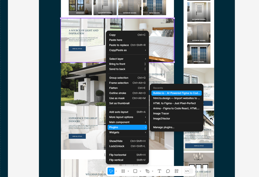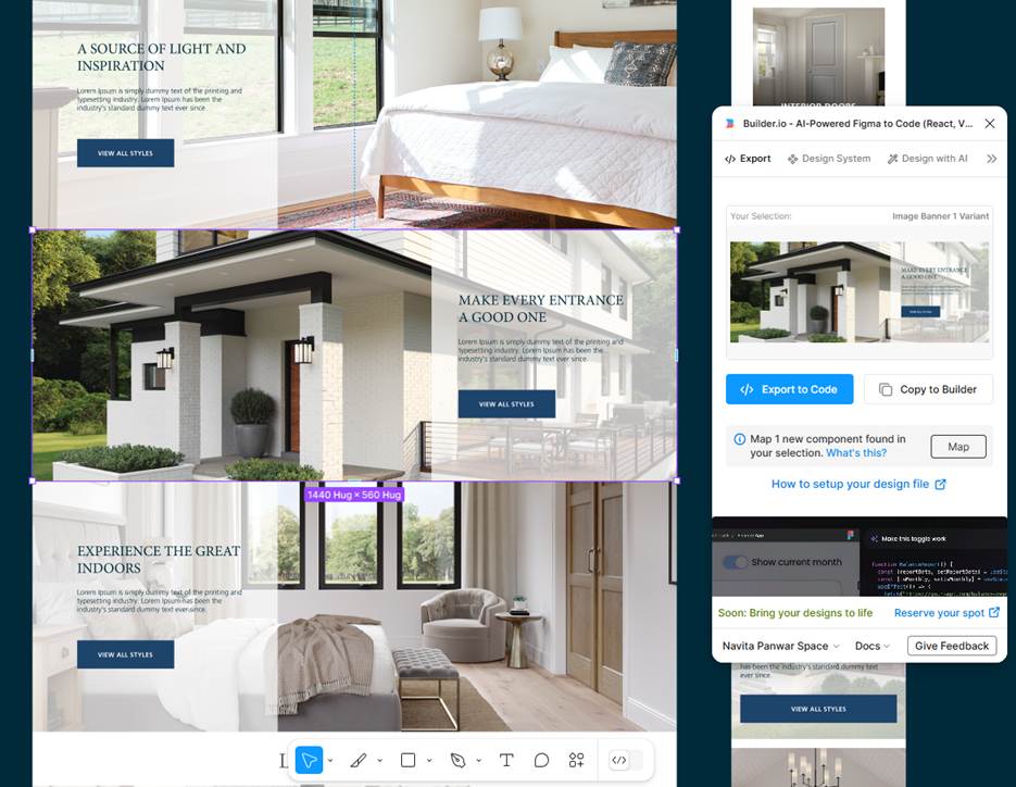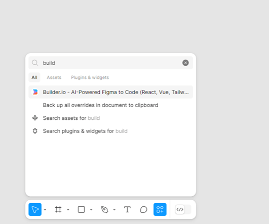 4. Once the builder.io plugin is installed on Figma, you can start moving your designs to code