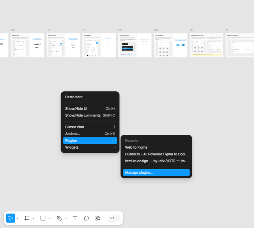 - Go to your team in Figma, right click and select the options as given below: