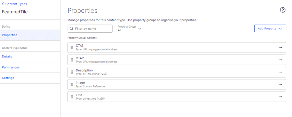 - Create the element content type with fields as per the requirement in the component.